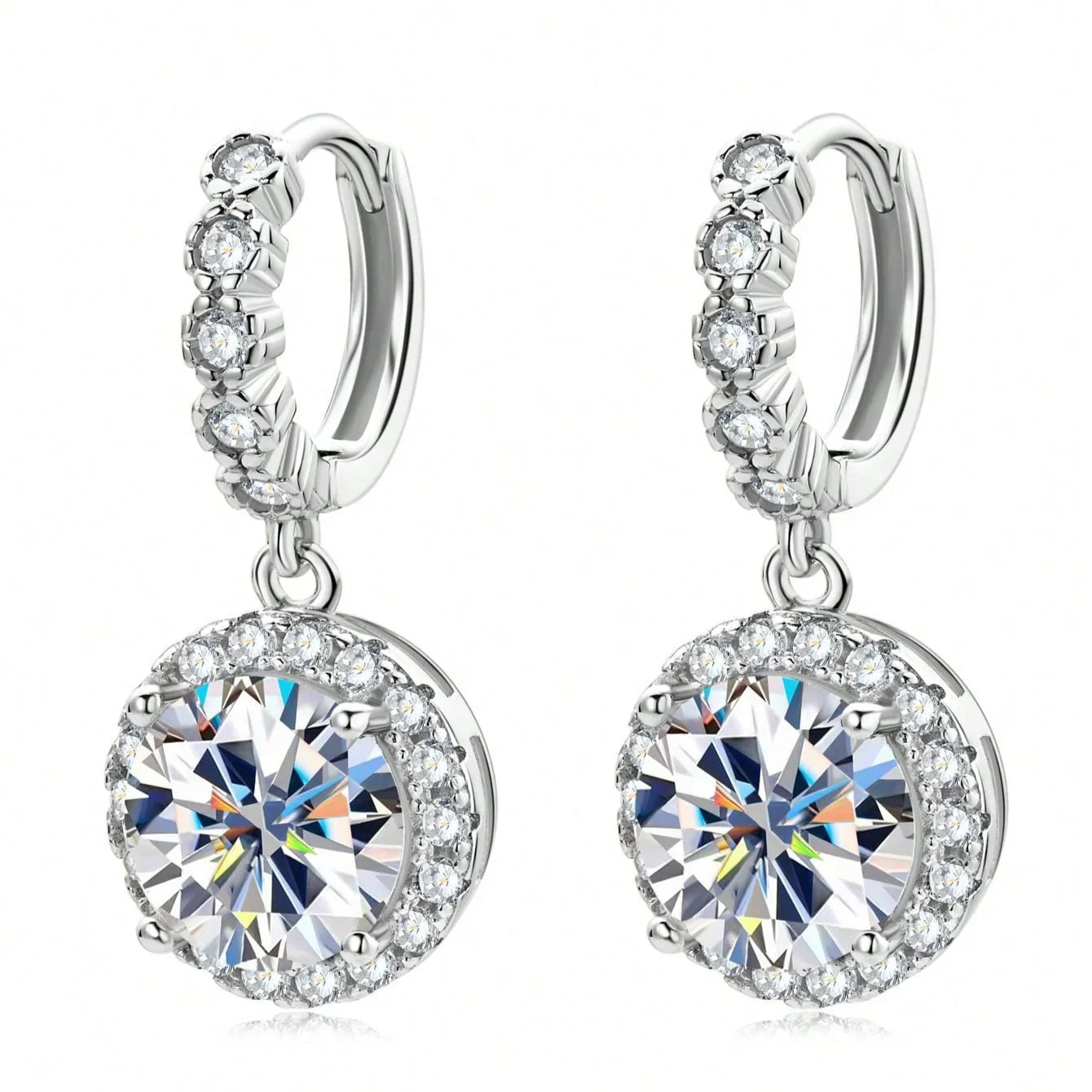 Round Moissanite Drop Earrings